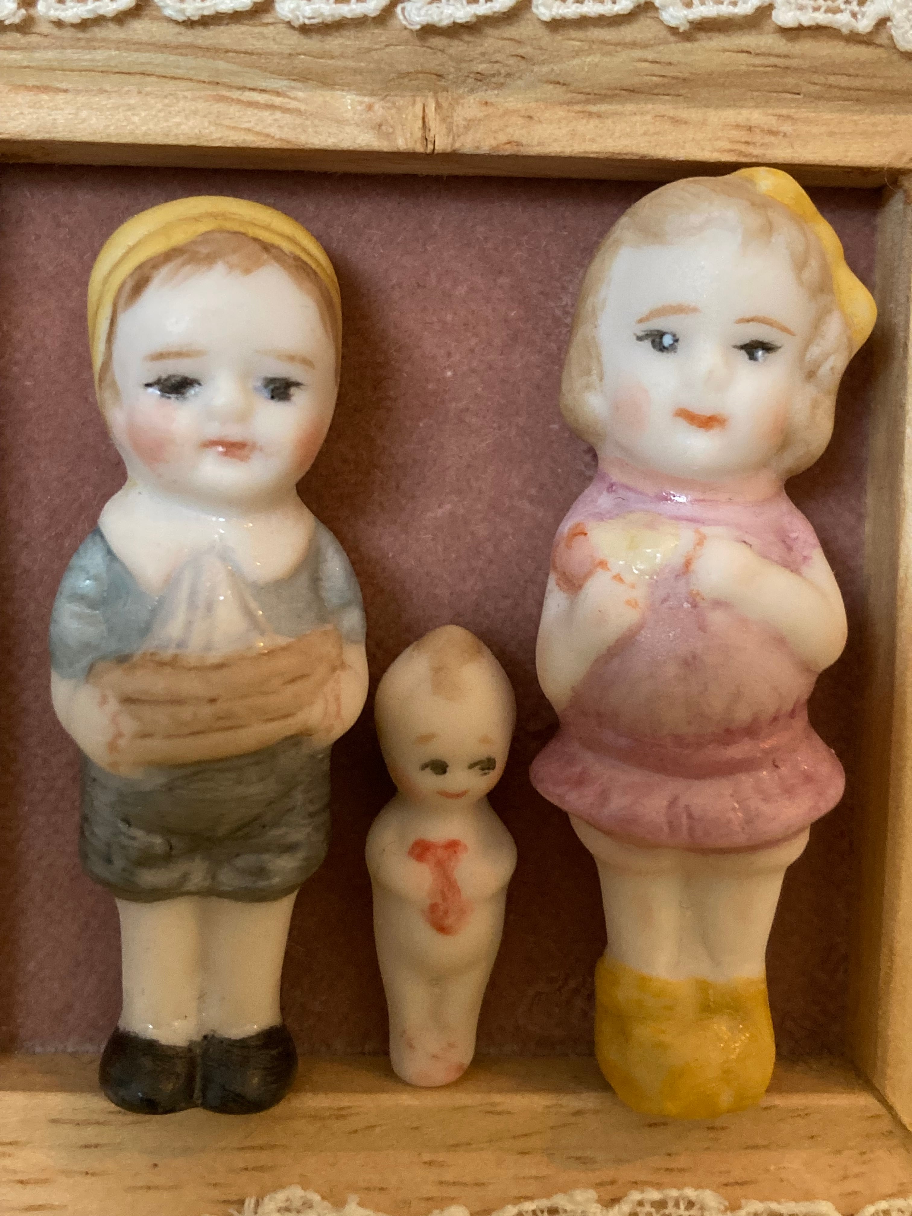 ミニチュアサイズのビスクドールのセットです。