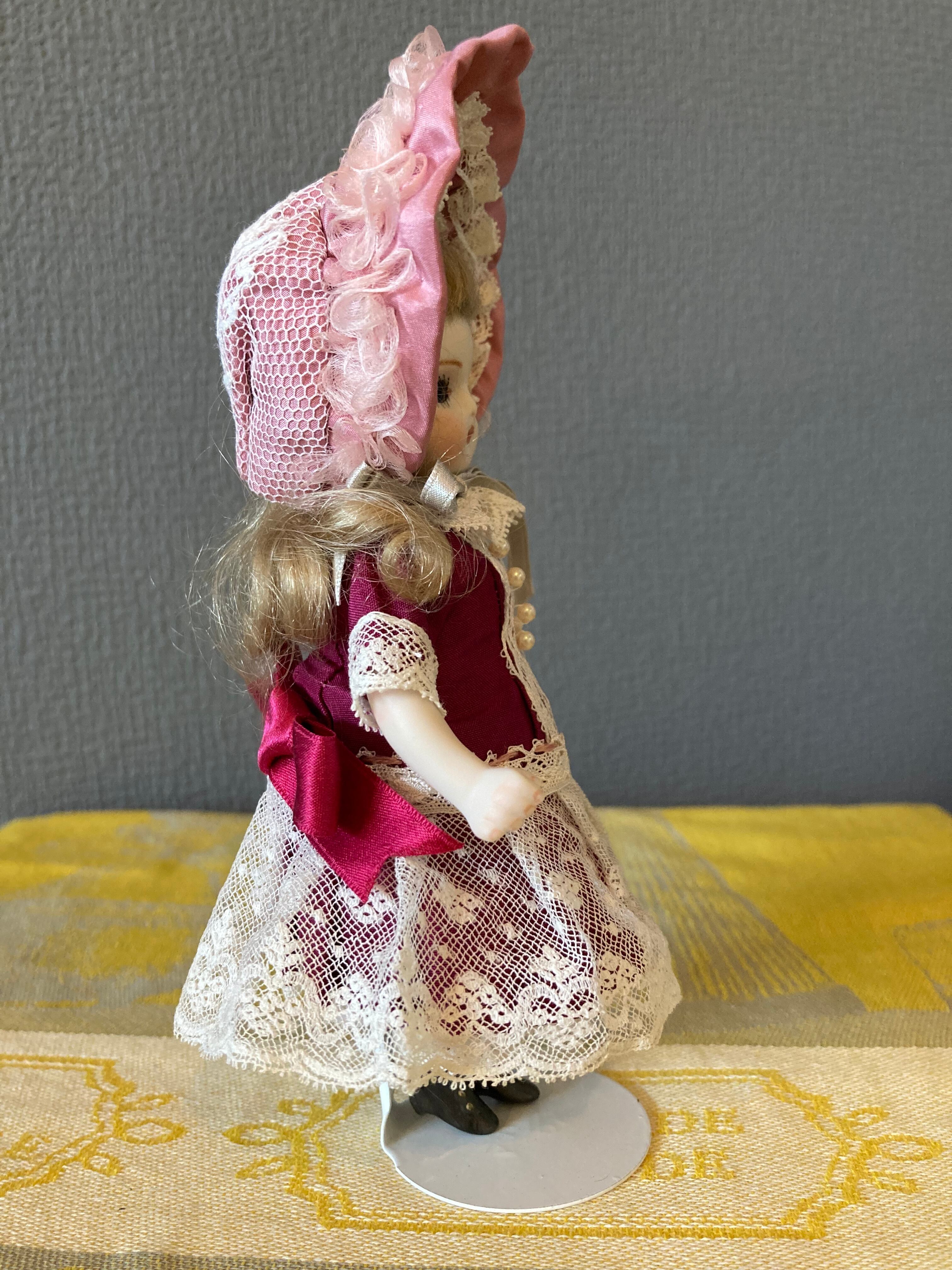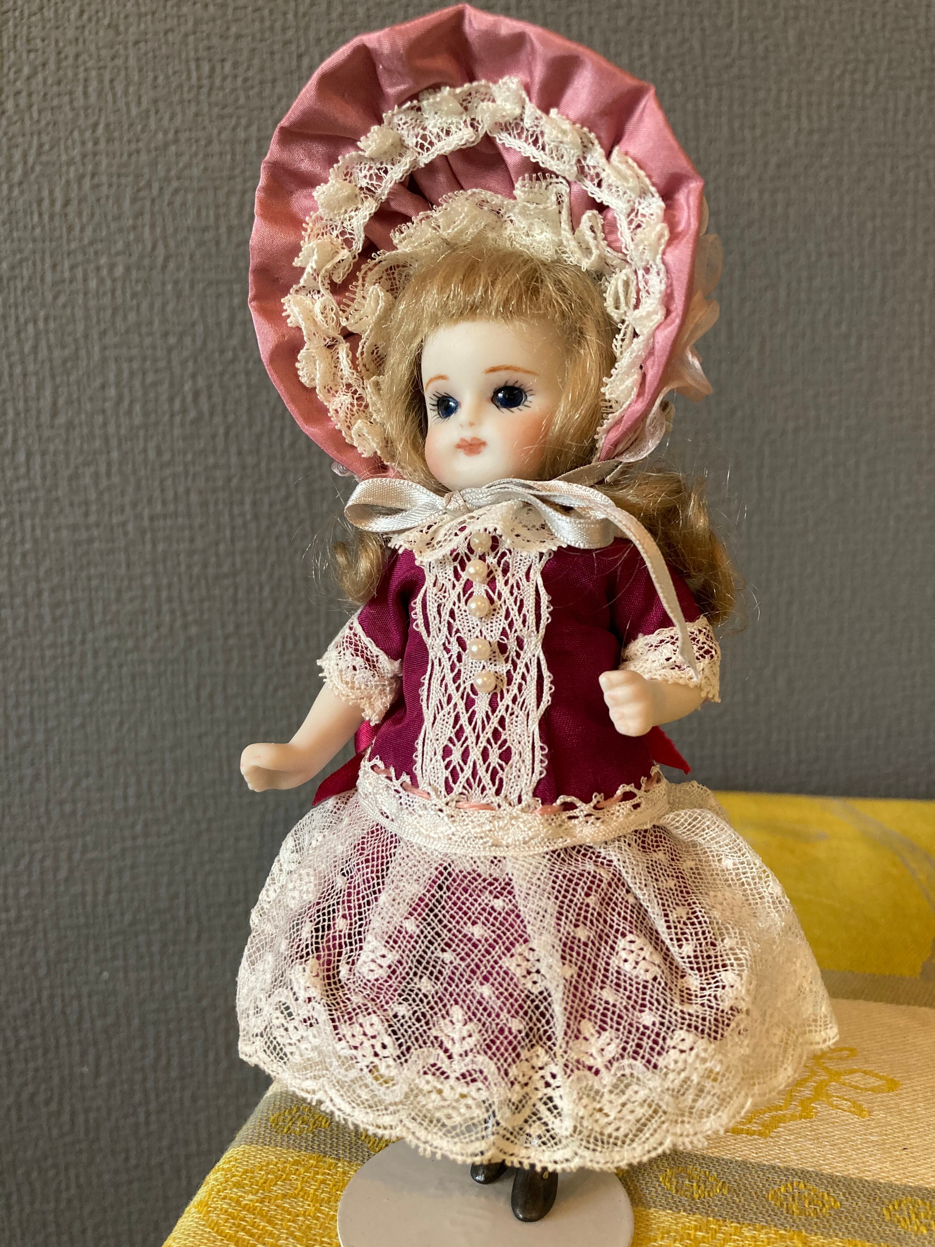 ボディ部分は全身陶器で、下着、シルクで作られたドレスと帽子を着用しています。